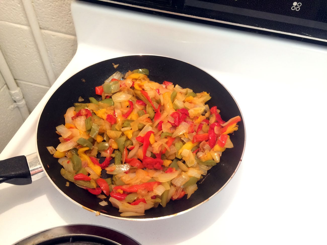 - 1 lb. bag of frozen stir fry mix (onion, red peppers, yellow peppers, green peppers)