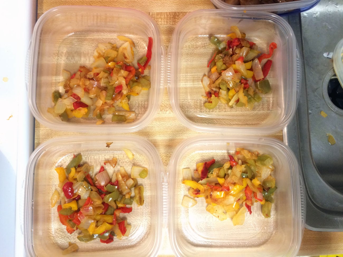 I am eating this for four meals, so I portioned the vegetables into four containers. Please pardon the sink.