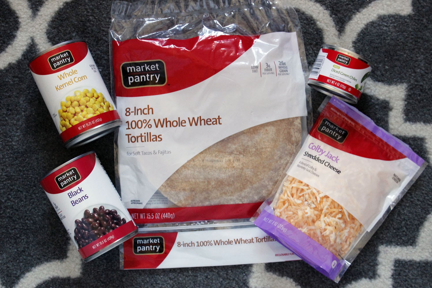 Combine beans, corn, and chilies in a bowl or container. Now, I opted for canned corn because I didn’t have any room in my freezer to keep frozen corn. Feel free to use frozen corn if you want! I also opted for whole wheat tortillas because I’m always trying to make things a little bit healthier.