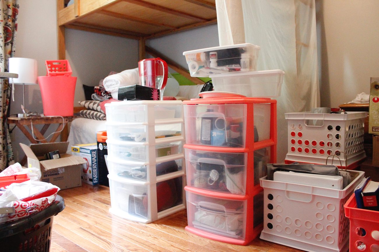 Half of the stuff I don’t need during my summer at home so it just goes right back in the box that I unpacked it from. This is super frustrating because in order to find my pens, for example, I have to unbox the entire box of office supplies. Then I have to pack it all back up.