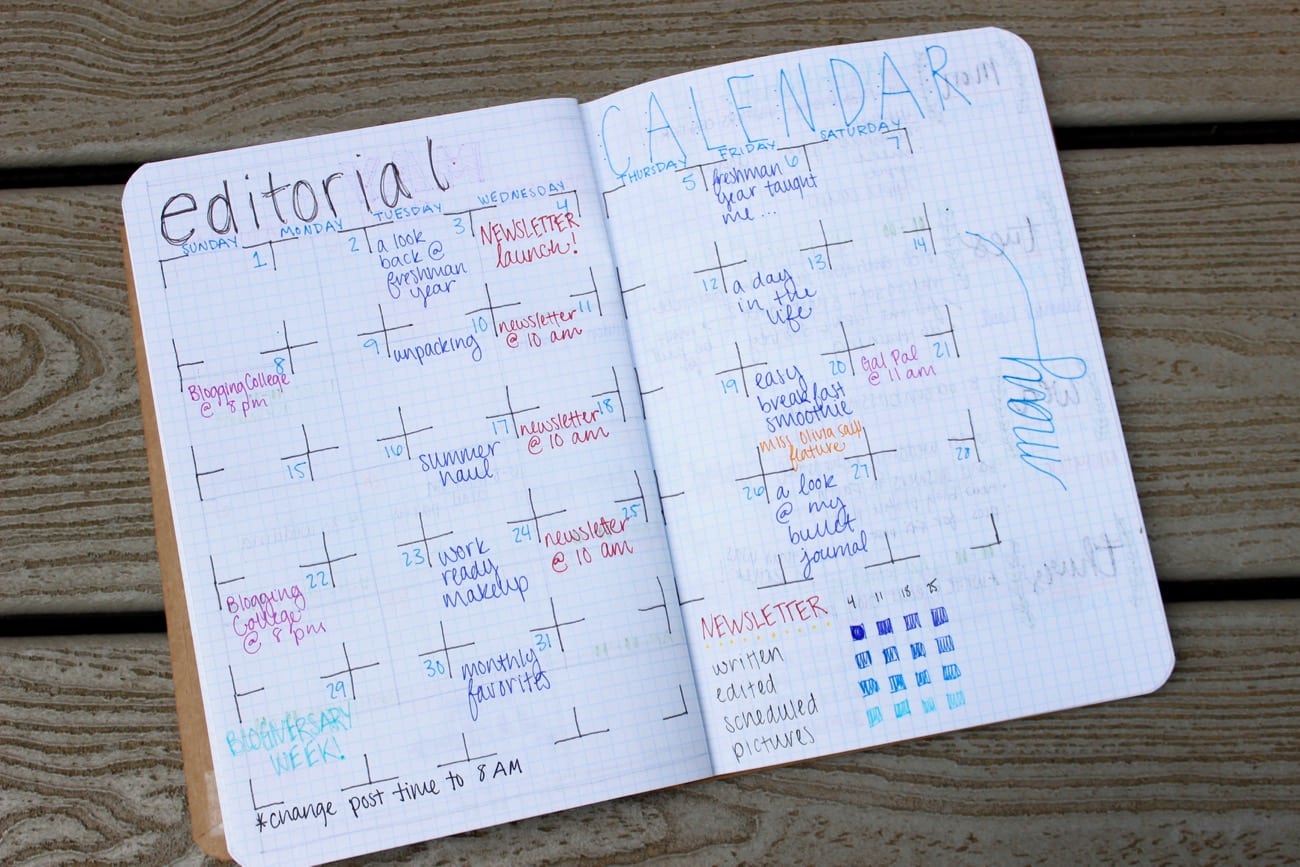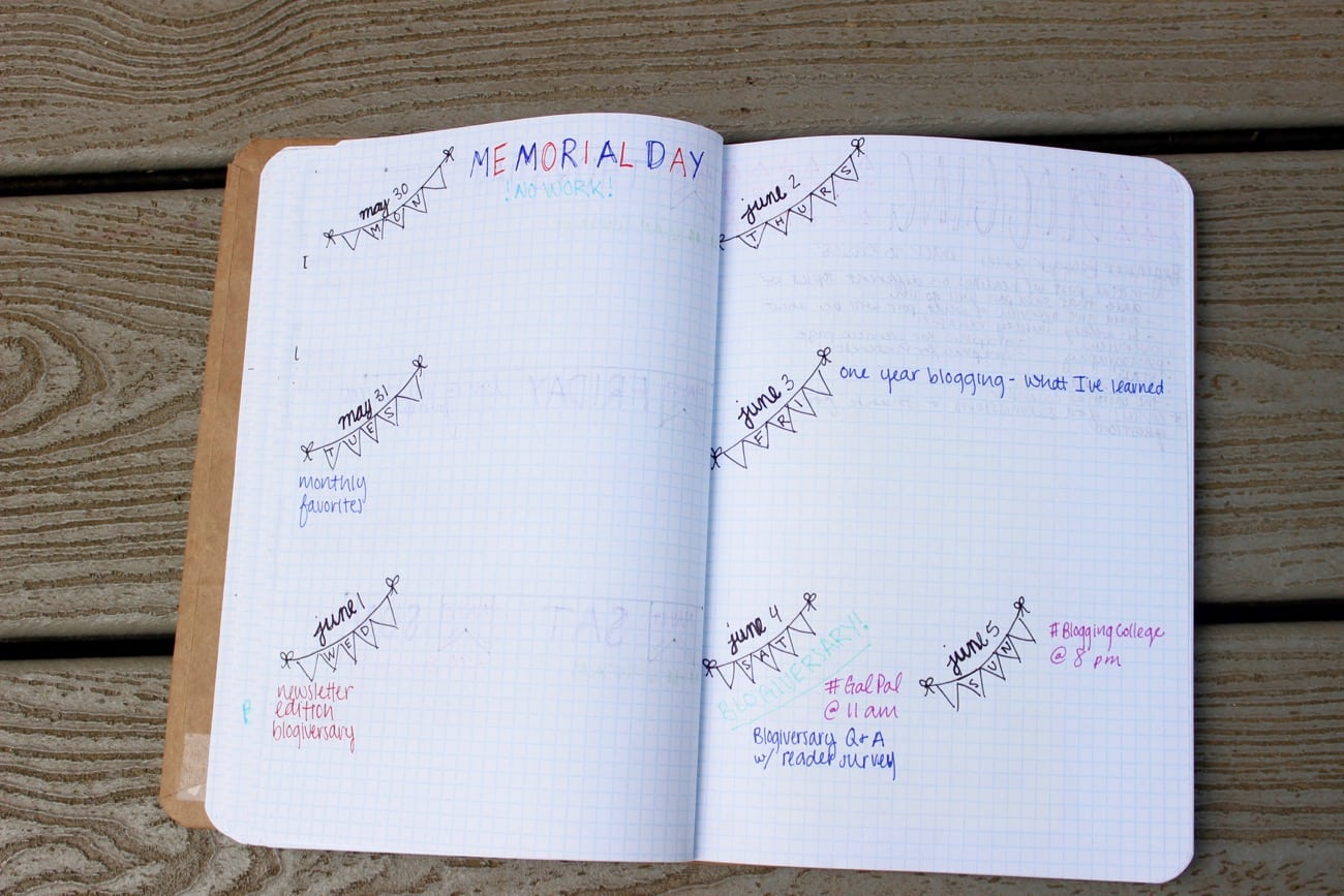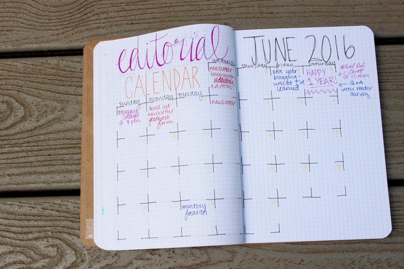 For each month, I create two monthly spreads. One is used for my every day life and the other is my editorial calendar. Keeping the separate like that is so much more efficient for me. I’m not trying to cram my life and my blog schedule into one 1″ x 1″ square.