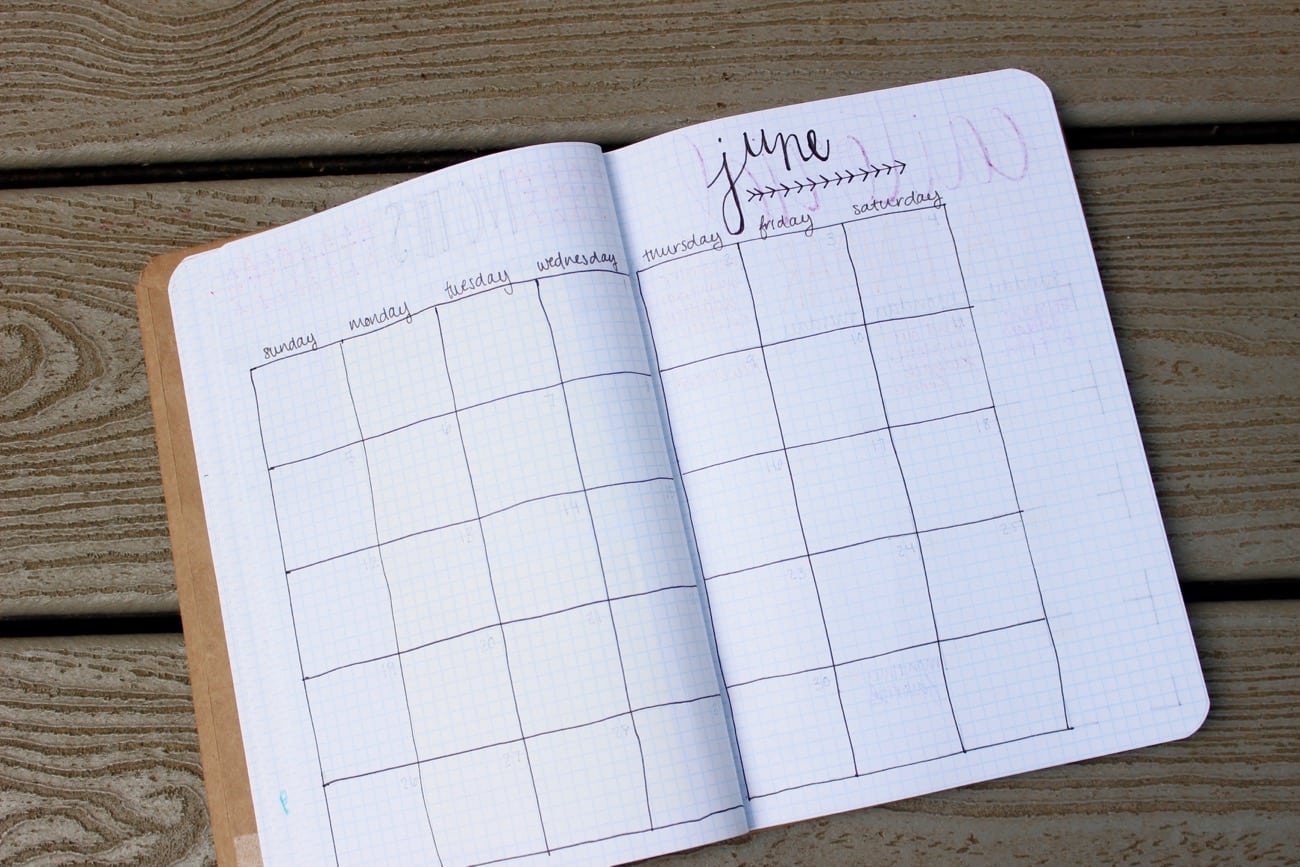 May was kind of a trial and error month. After all, I just started my bullet journal in May! I guess it kind of stuck with a blue motif. June is a very “make a statement” kind of month. I love the combination of the purple and orange in the title.