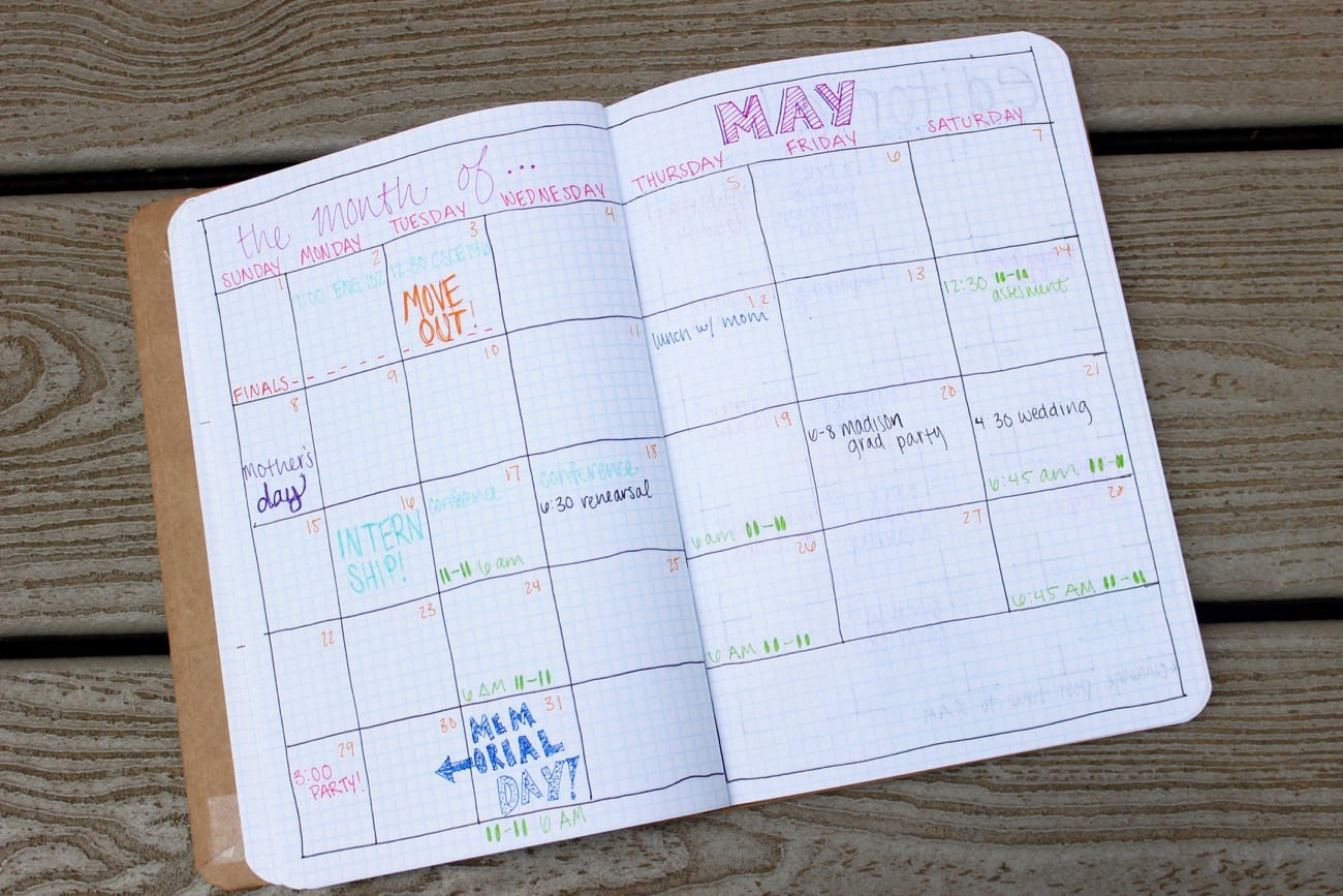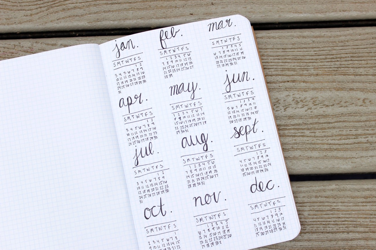 I’m not going to lie. I found this idea on Pinterst and I created it myself. I love the contrast of the black pen on the white paper, and the scripty font above each month is so pretty! This whole spread probably took me around half an hour to create.